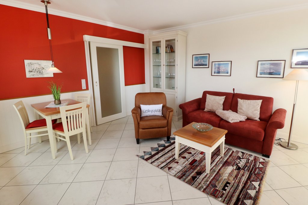 Wohnraum mit Couch (Schlafcouch für 1 Person), Kabel-TV, WLAN, Radio mit CD-Player.