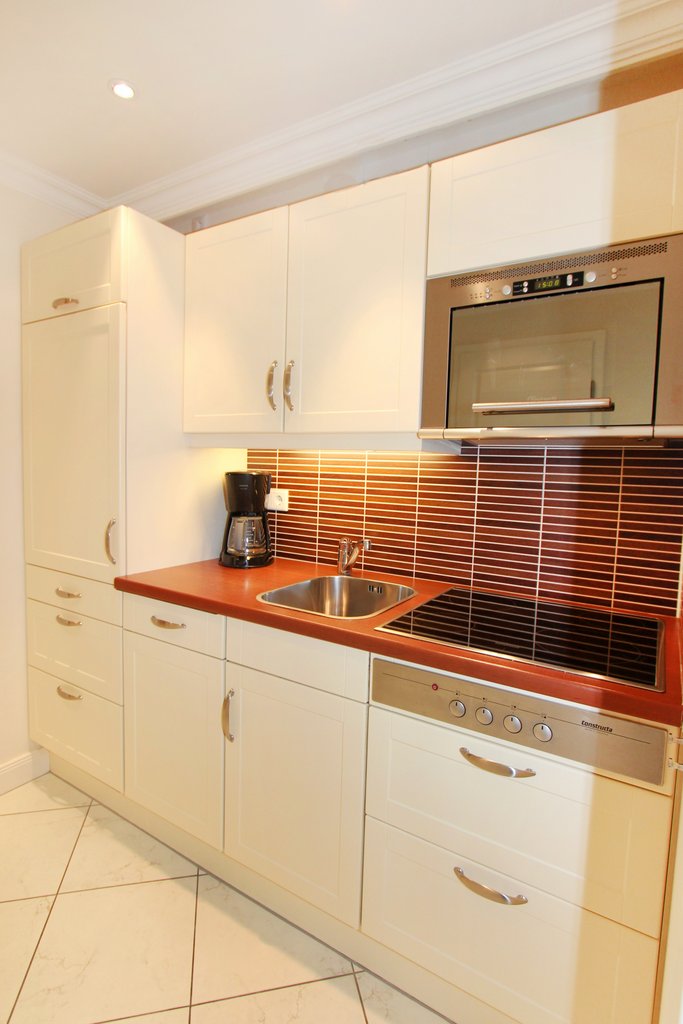 Kochnische mit Ceranfeld (4 Kochfelder), Mikrowelle, Geschirrspüler.